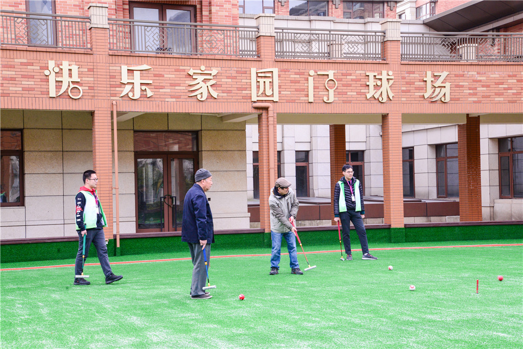 快乐趣味运动会!回味经典,老少同乐。经典的弄堂游戏夹弹珠、套圈、踢毽子、跳长绳、滚轮子、掷篮球等游戏欢乐进行。志愿者陪伴长者们打起了门球并结成红蓝两队,红蓝双方战绩10:9,虽最终红方以微小优势获胜,但共同参与收获了友谊也收获了健康。