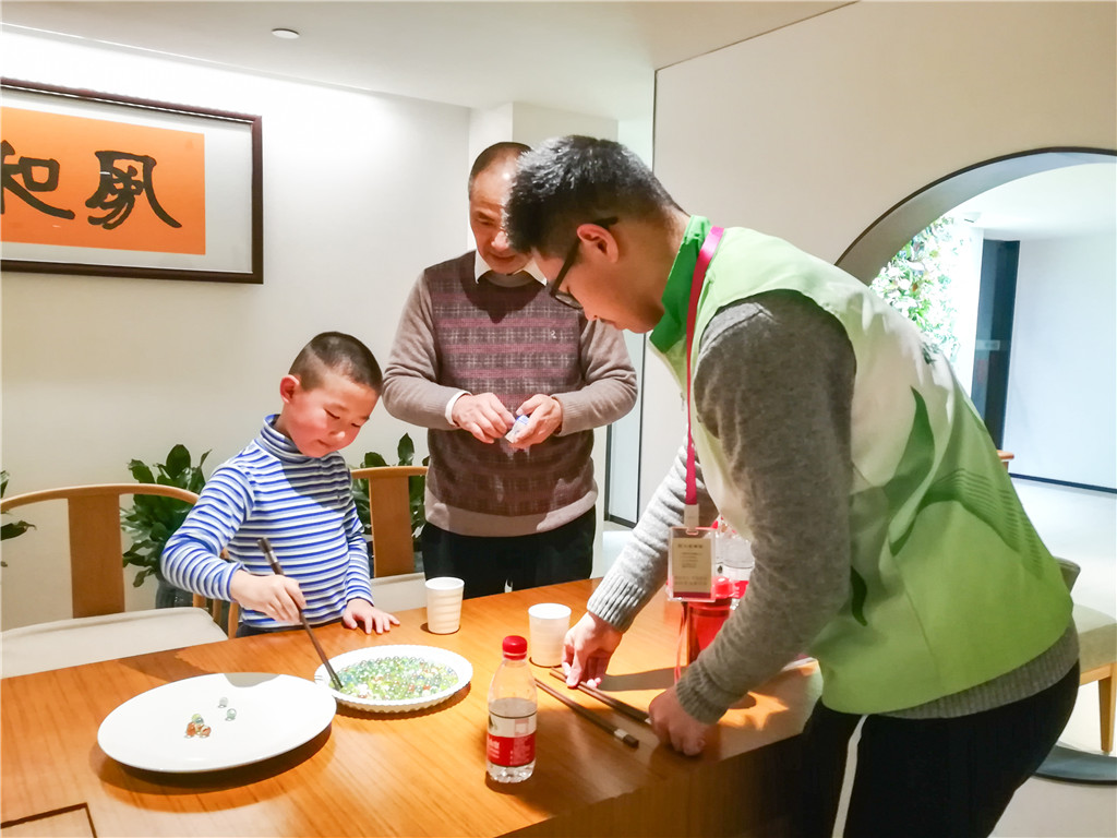 2019年农历新春佳节期间来自新东苑公益基金会快乐时间银行的58名志愿者:上海外国语大学闵行外国语中学和七宝中学的学生以及新东苑的伙伴们用真诚的微笑和热情的服务陪伴快乐家园的家人们度过了一个充满欢乐和温情的新春佳节。